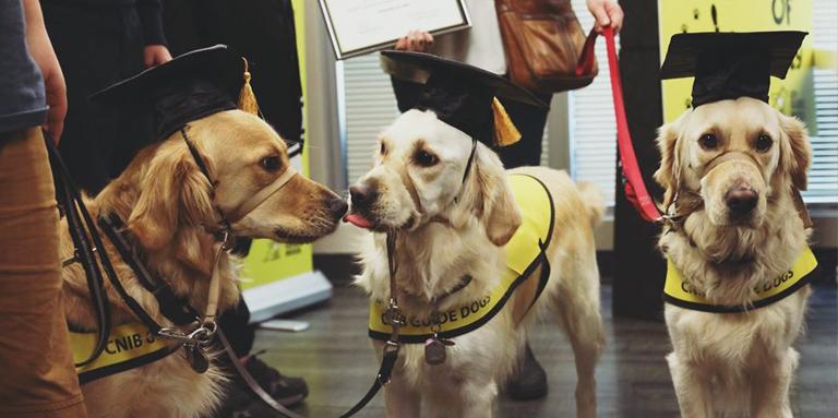 Le Programme de chiens-guides d’INCA est fier de célébrer les chiens-guides, les chiens compagnons et les chiens ambassadeurs qui obtiennent leur diplôme en compagnie de leur nouveau partenaire chaque année après.